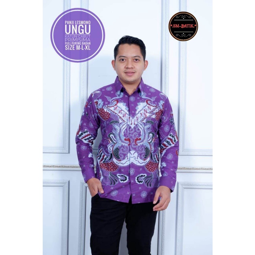 Kemeja batik pria terbaru warna ungu purple / Batik ungu terong lengan panjang / baju batik lapis furing / batik kerja warna ungu / baju batik ungu purple panji lesmono panjang / batik cowok warna ungu