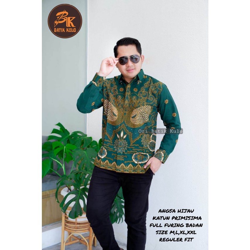 Kemeja batik pria warna hijau botol terbaru / baju batik pria hijau tua full furung / kemeja batik panjang hijau botol ANGSAIJO
