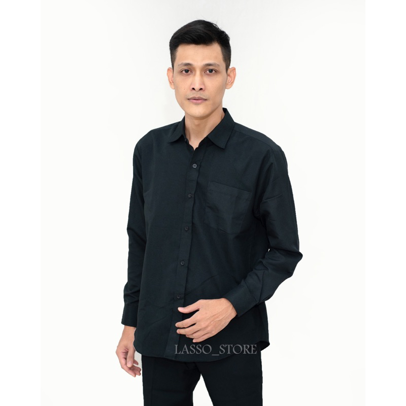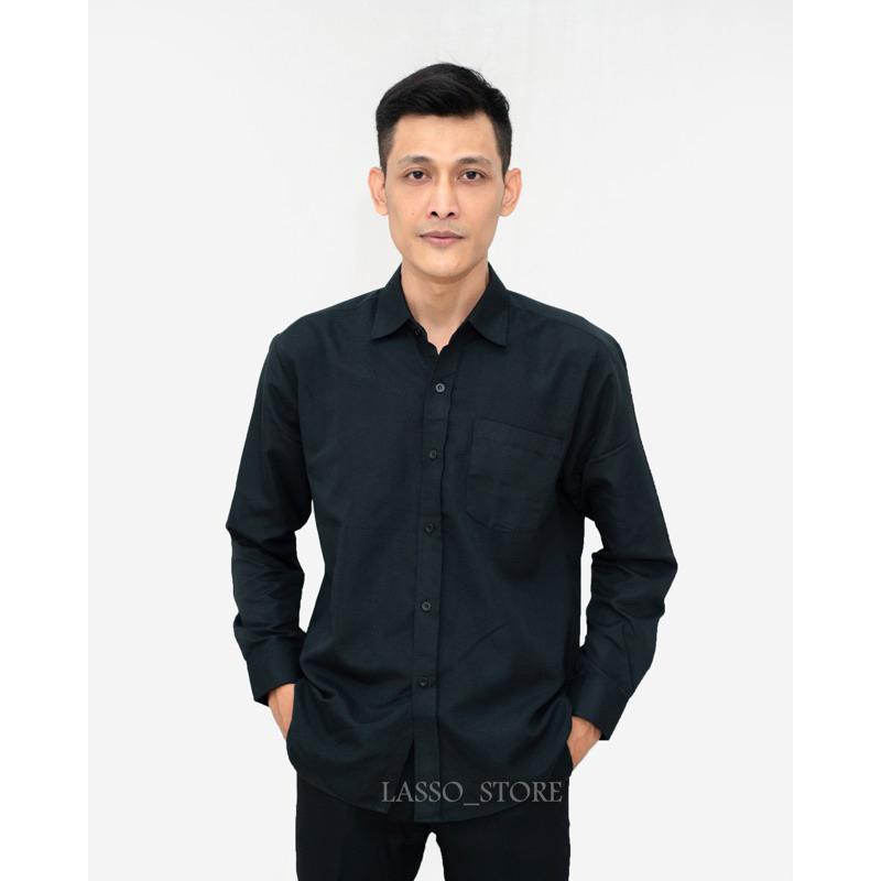Kemeja hitam polos pria | kemeja hitam pria | kemeja polos slimfit