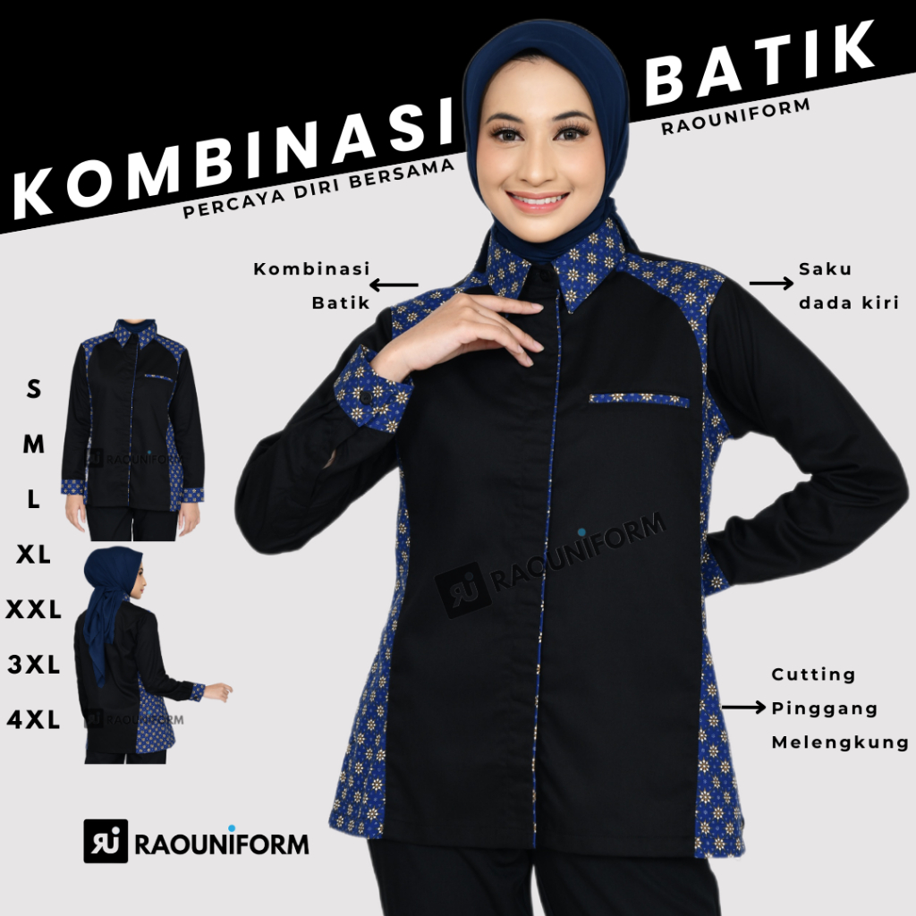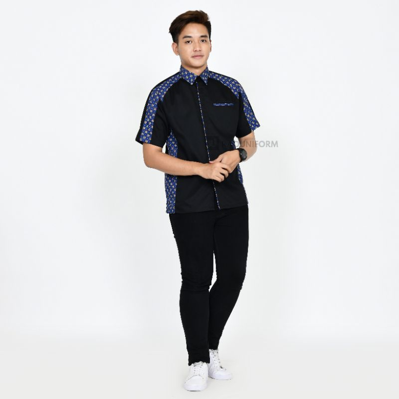 Kemeja kombinasi batik/Seragam kerja batik/Atasan batik wanita/Kemeja batik pria/Seragam komunitas
