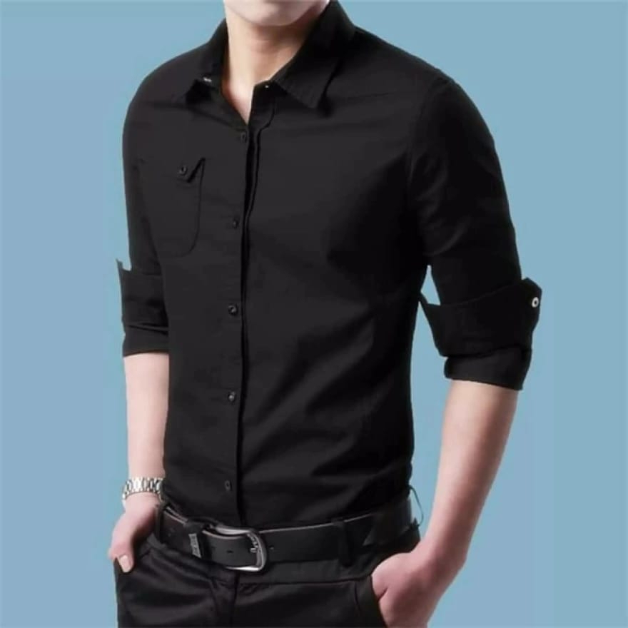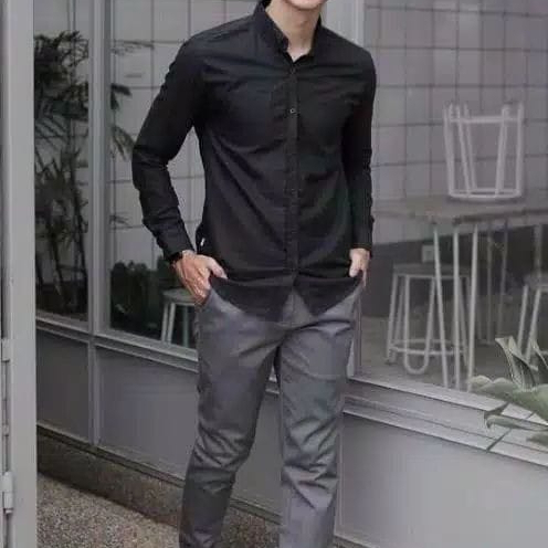 Kemeja priaa hitam poloss baju formal fashion dan kerja/ kemeja hitam panjang best seller/kemejaa cowok lengan panjangg