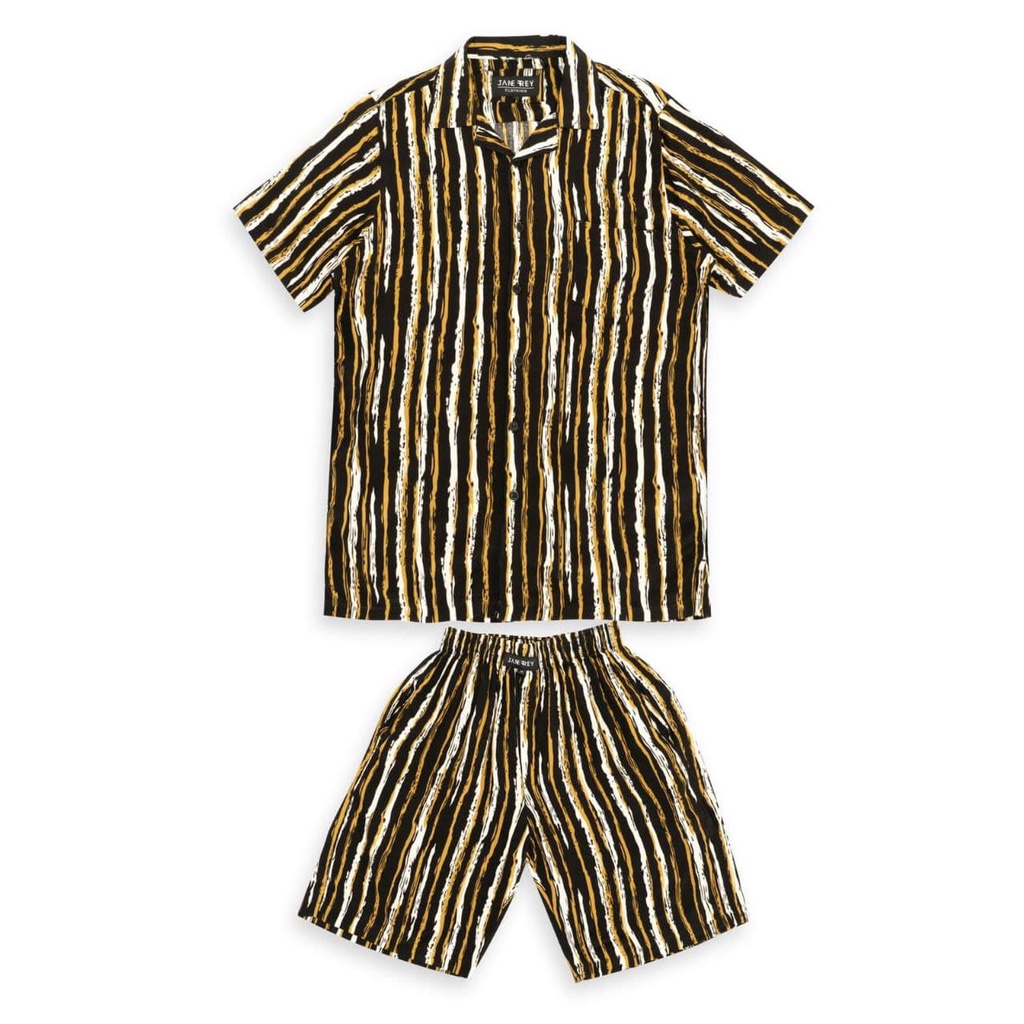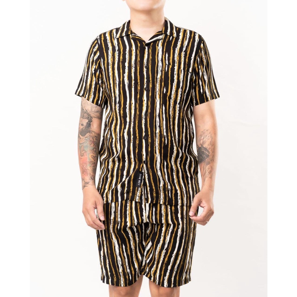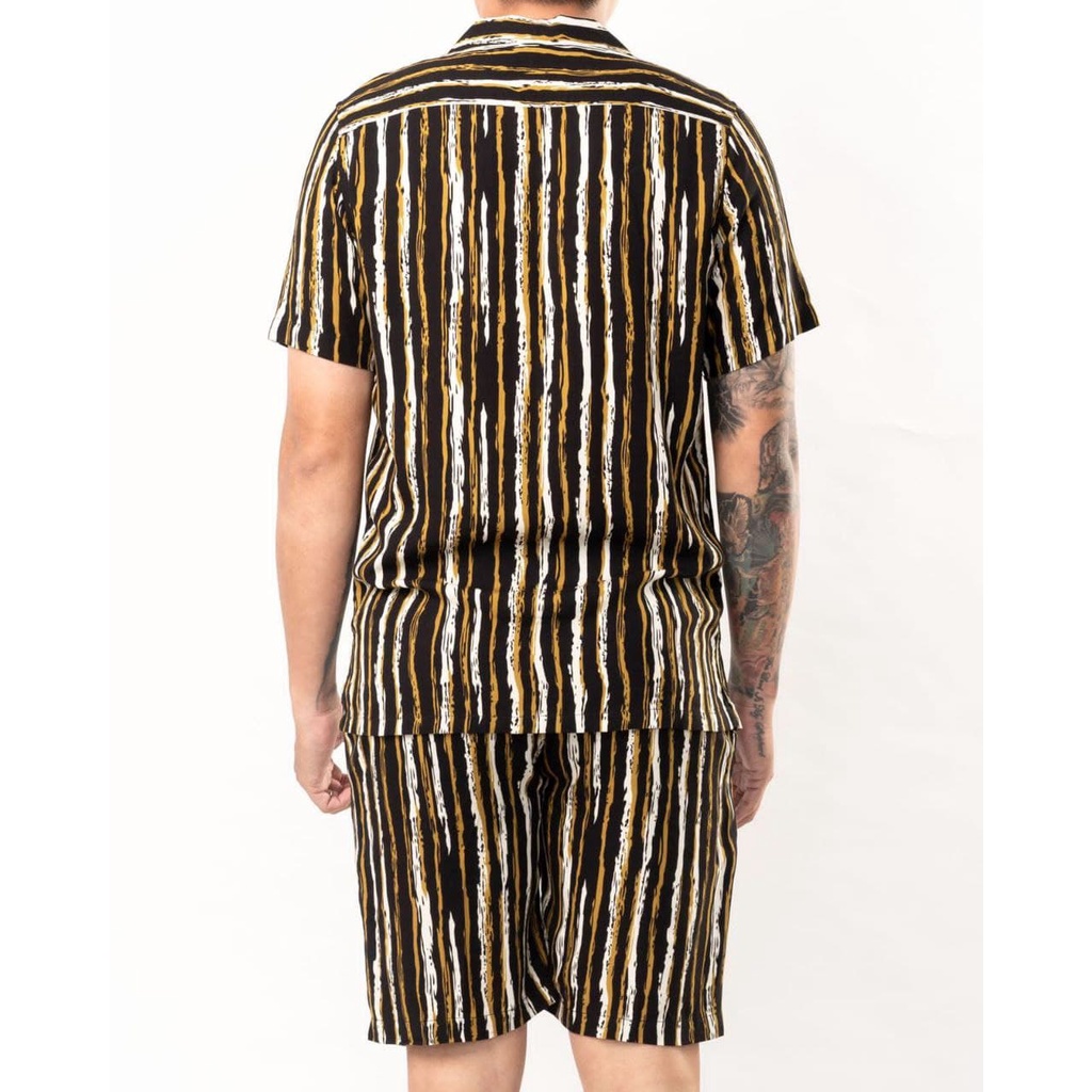 Kemeja setelan pria motif stripes hitam