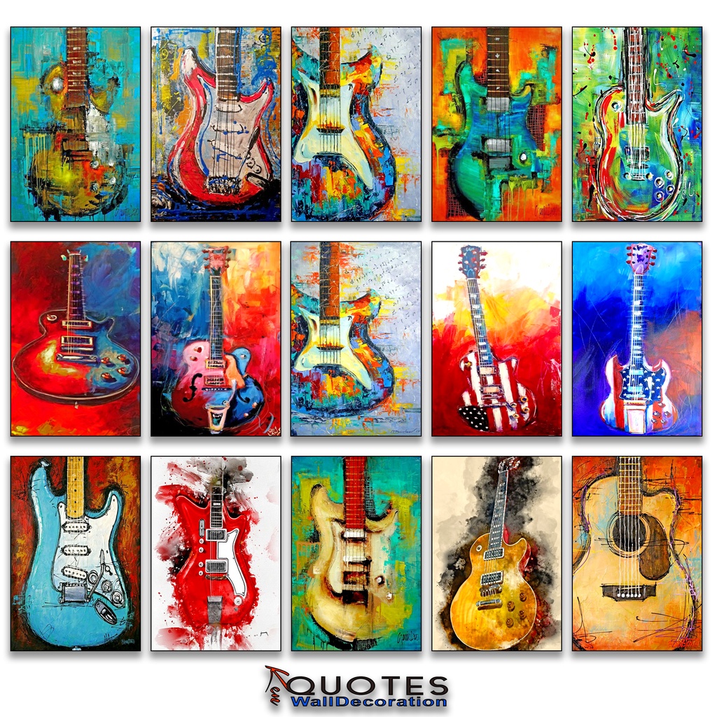 KenQuotes - Hiasan Dinding Poster Gitar Abstrak Lukisan Gitar Musik Pajangan Rumah Wall Decor Motivasi Poster Kayu 20x30cm