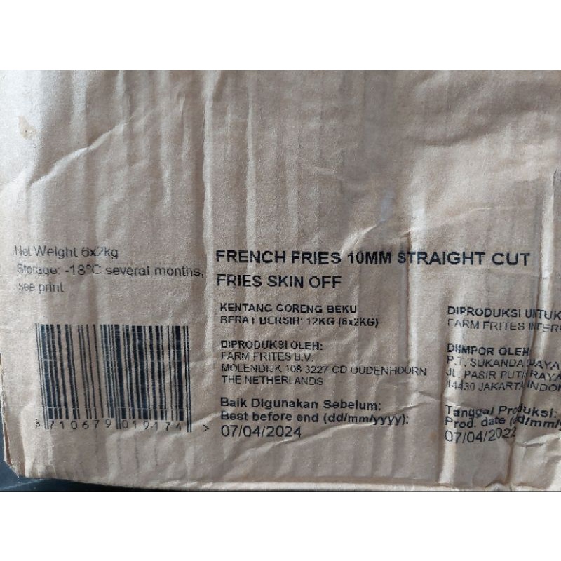 Kentang Goreng Beku Straight Cut 10mm 2kg / Straight cut 2kg / Farm Frites Straight cut