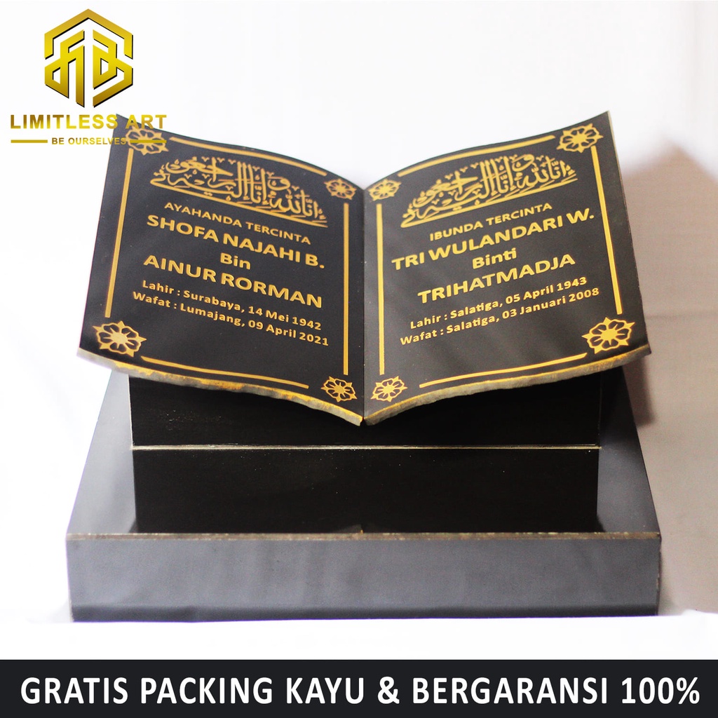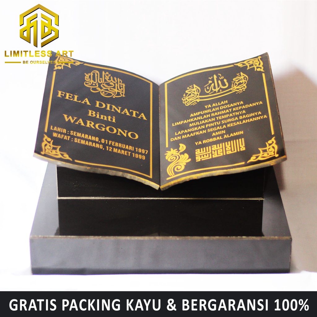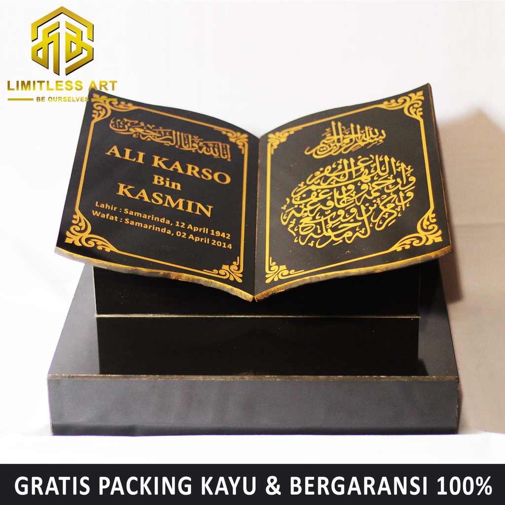 Kepala Batu Nisan Dudukan Granit Model Bentuk Buku Maesan Kijing Makam Kuburan Nissan Nisa Granit Islam Model Bentuk Buku Alquran Ukir Hitam KG40X30