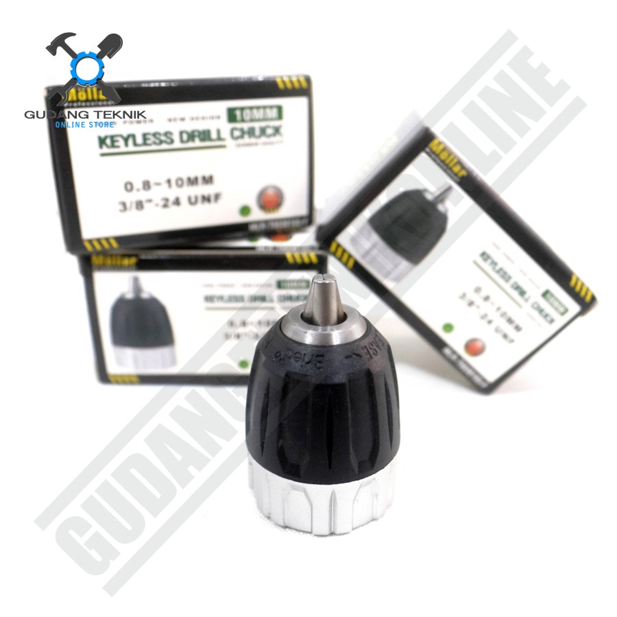 Kepala Bor 10mm CORDLESS Keyless / KEYLESS Drill Chuck 10 mm 3/8" inch 24 UNF - Kepala Bor Tangan Baterai