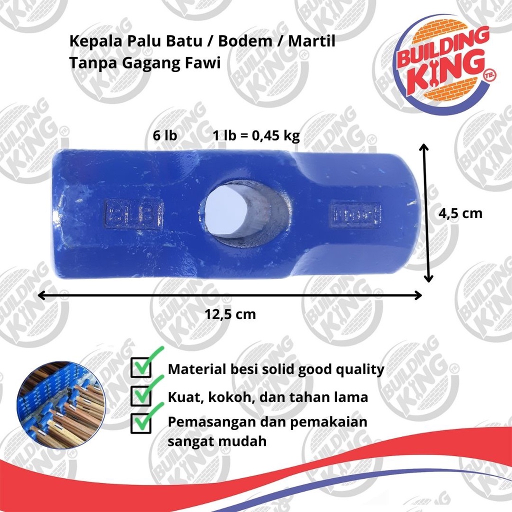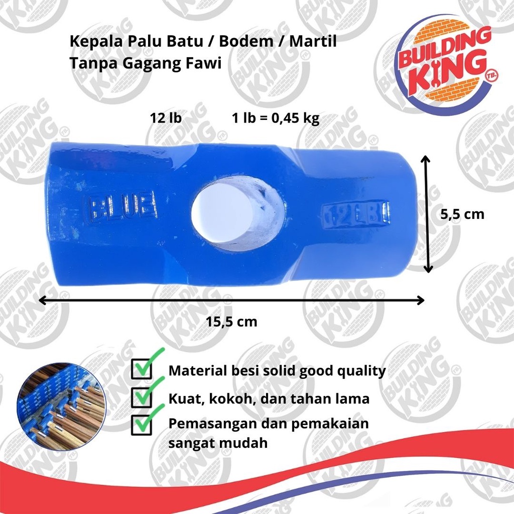 Kepala Palu / Martil / Bodem 2,3,4,6,8,12 LB Berbagai Ukuran Tanpa Gagang Palu Batu Bobok Pukul
