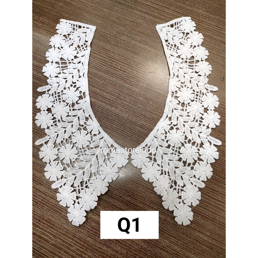 Kerah Jahit/ Renda Kerah Bordir Lebar/ Kerah Tempel/ Collar (Harga/Pasang)