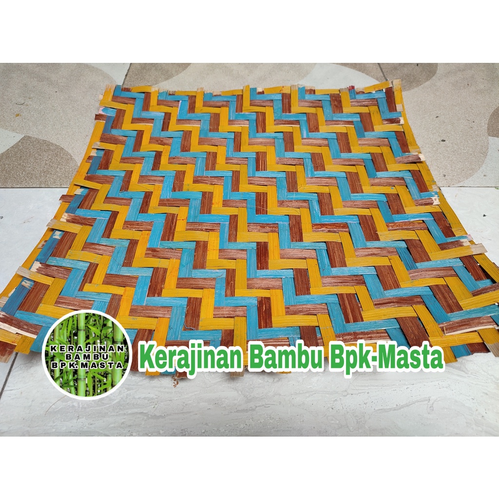 Kerajinan Anyaman Bambu Bilik Dekorasi Rumah Warna Kuning Coklat Biru