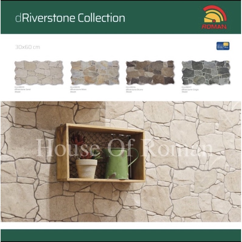 Keramik Dinding Batu alam/Keramik Dinding Roman/dRiverstone 30x60/Dinding/Keramik Dinding/Keramik Dinding Roman Krem