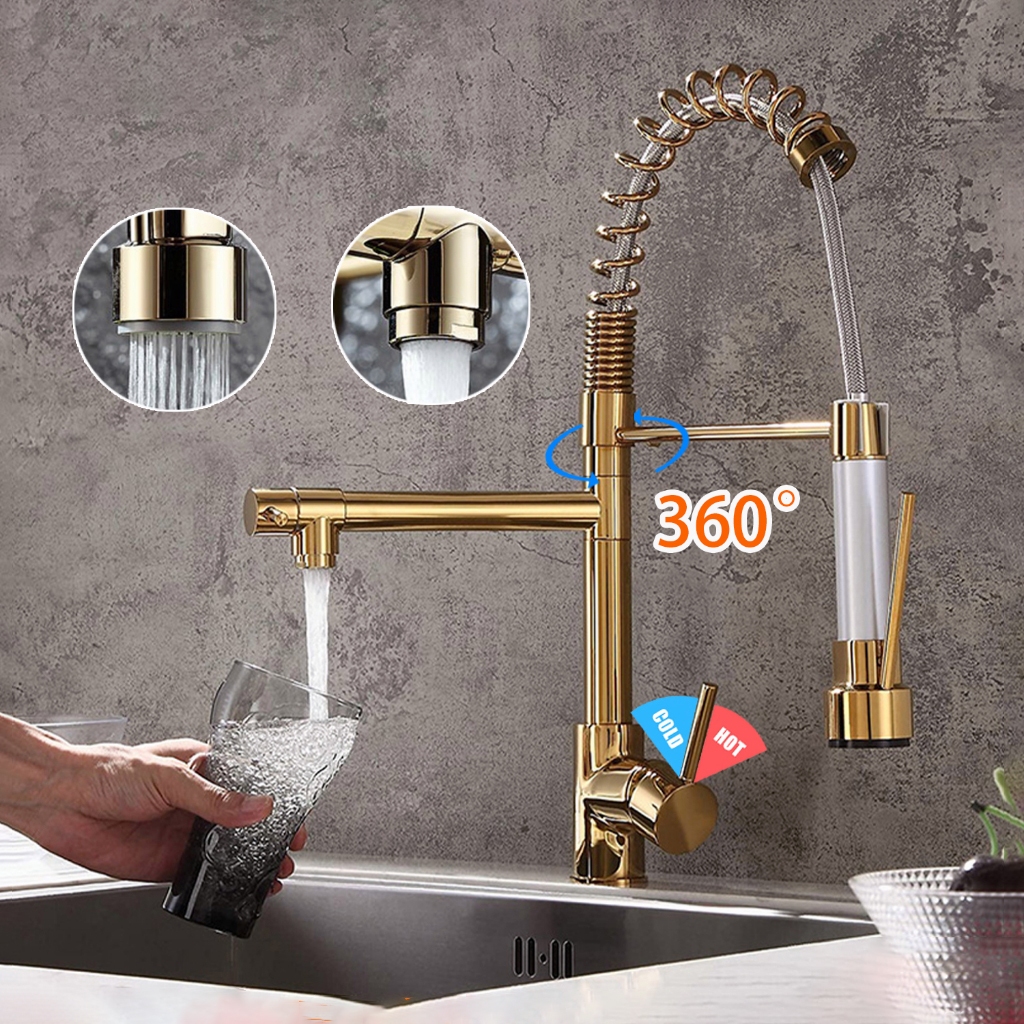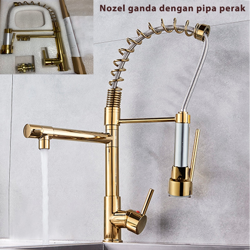 Keran Air Wastafel Panas Dan Dingin SUS 304 Perak Matte Kran Kitchen Sink Kran Kamar Mandi Kran Cuci Piring Fleksibel