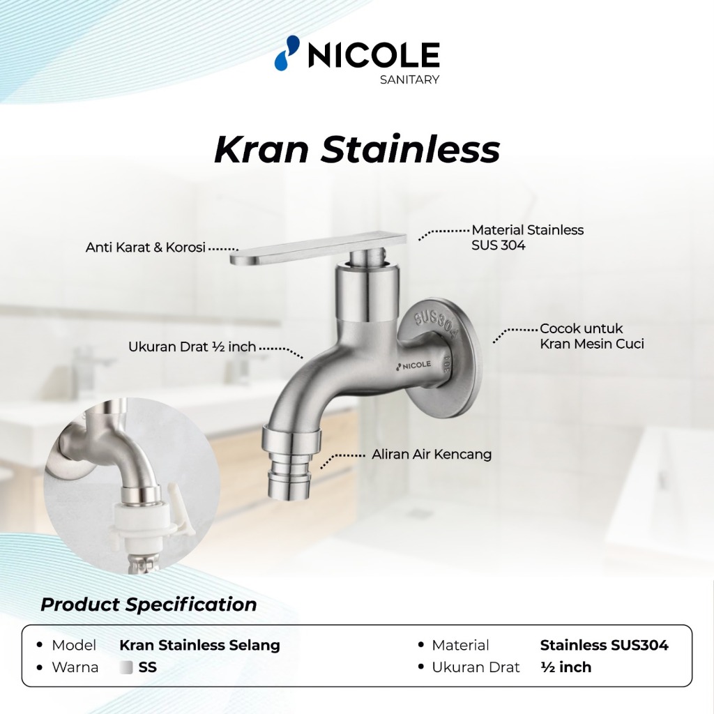 Keran Mesin Cuci Stainless 304 / Kran Filter / Keran Air Tembok / Keran Taman 1/2"