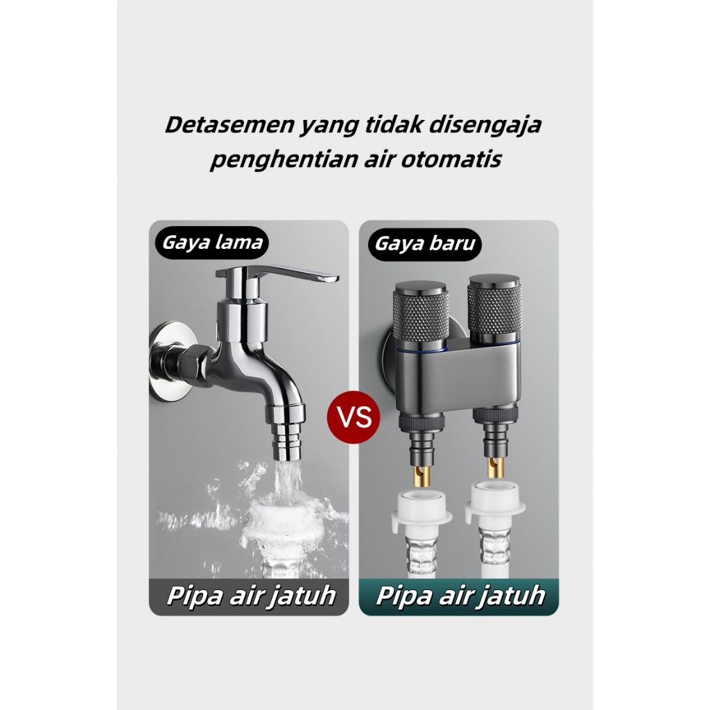 Keran mesin cuci penghenti air otomatis Katup pengalih kepala ganda paduan taman kran air.