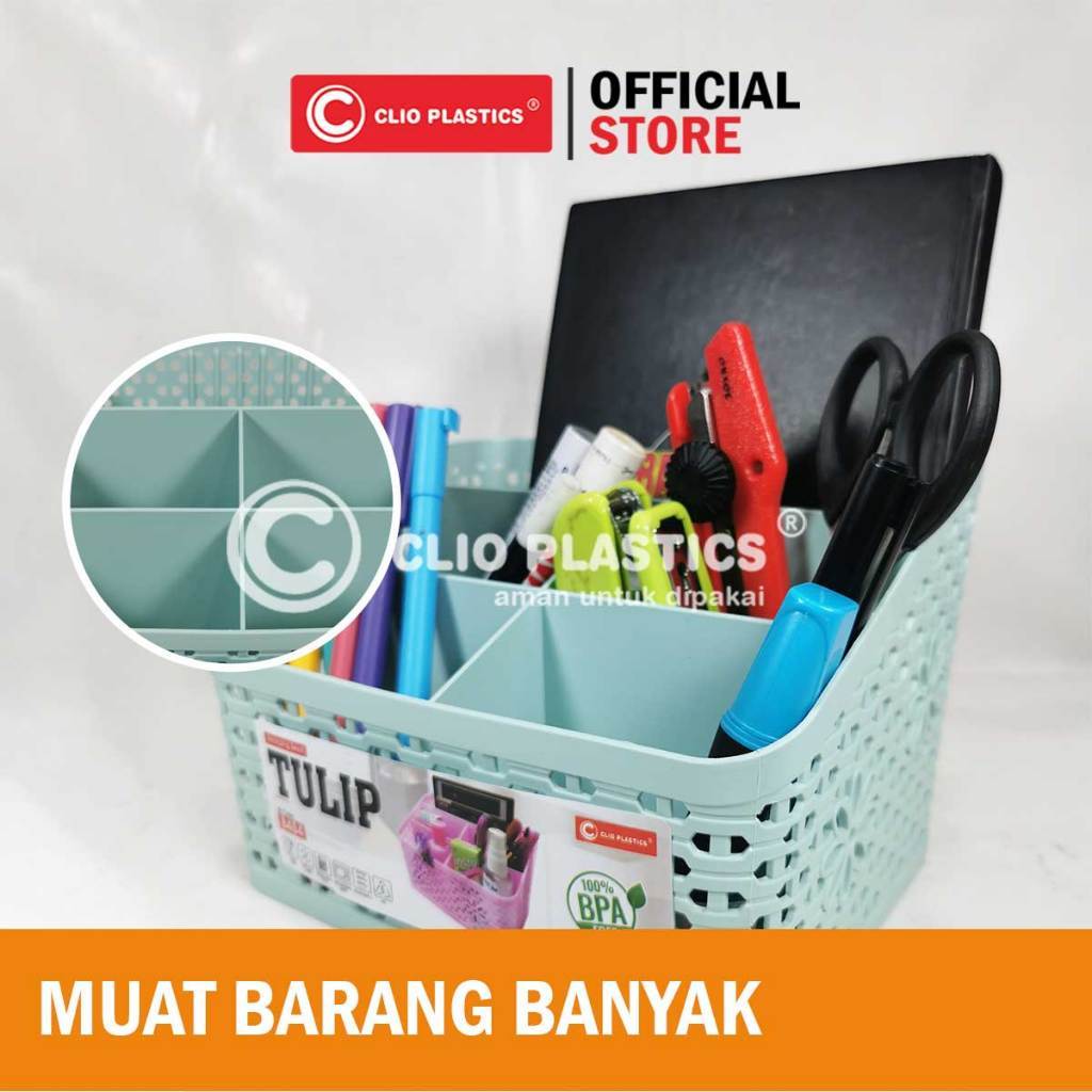 Keranjang 5 Sekat Tulip Clio Keranjang Serbaguna / Keranjang Make up / Keranjang Estetik Multifungsi