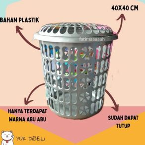 Keranjang Baju Bulat Tutup GO / Laundry Basket Besar / Kranjang Pakaian Serbaguna