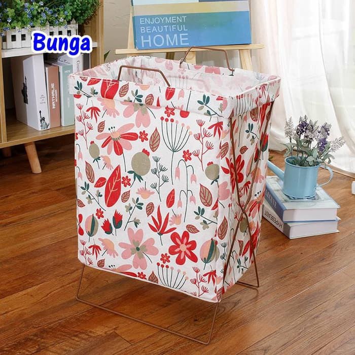 Keranjang Baju Cucian Pakaian Kotor Laundry Basket dengan Rangka KB010