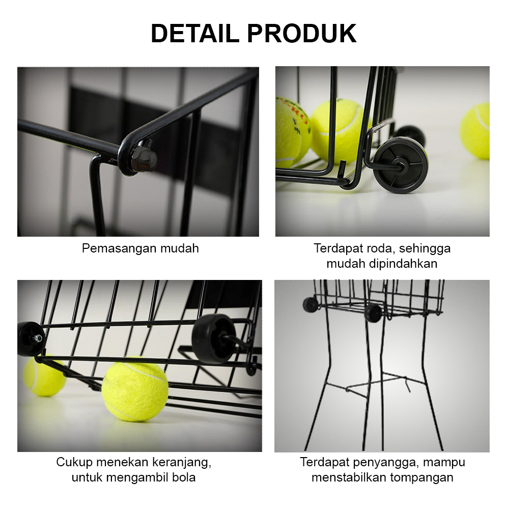 Keranjang Bola Tenis Kapasitas 60-70 Bola | Tennis Ball Hopper Stand | Ball Basket For Tennis | Keranjang Tempat Bola Tennis Kasti Roda Portable | Tennis Pick Up Hopper