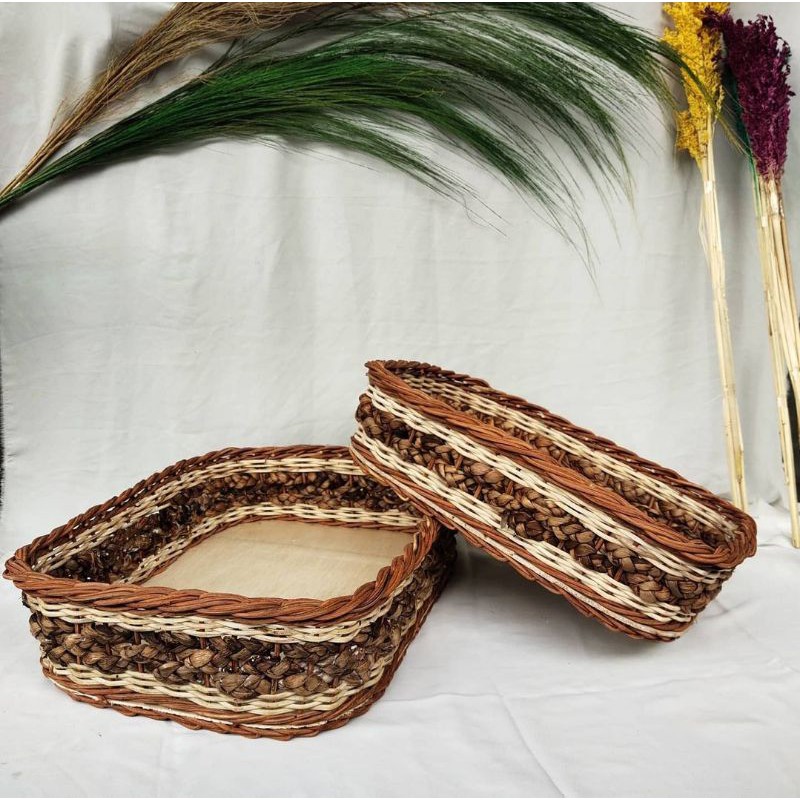 Keranjang Hantaran / Keranjang Parcel / Keranjang Rotan Mix Enceng Gondok / 1 Set Isi 2