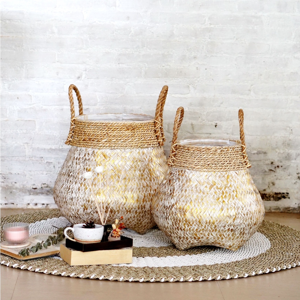 Keranjang Kerajinan Bambu homEY - Bamboo Sexy Basket - White Washed Gold Prodo