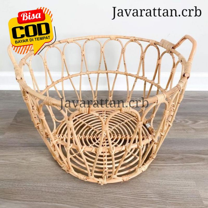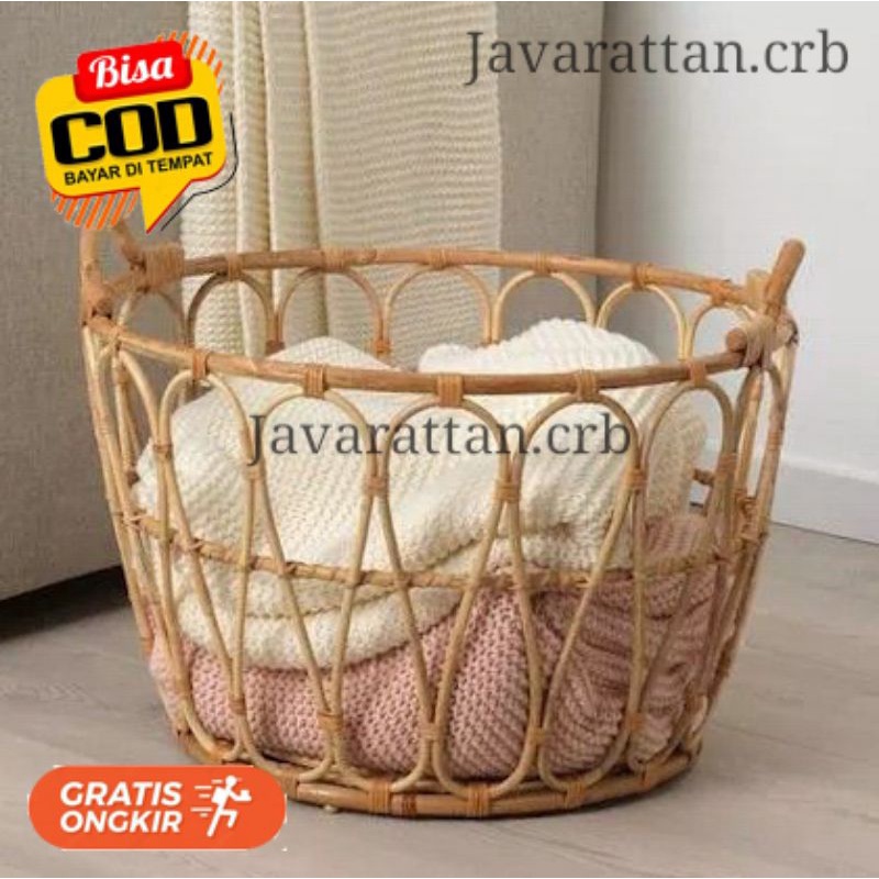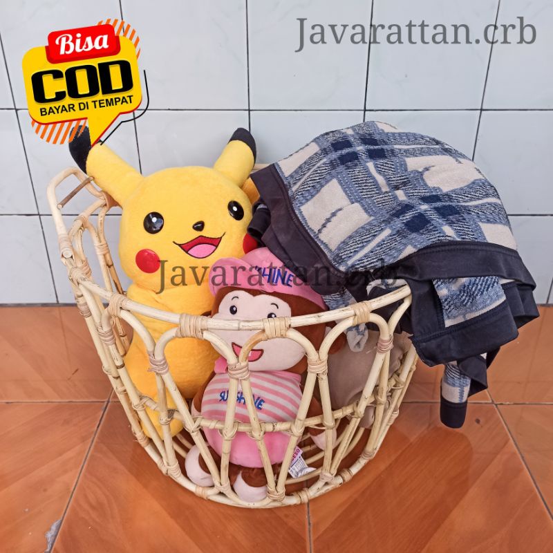 Keranjang Laundry Pakaian dari Rotan Bulat / Keranjang Rotan Serbaguna