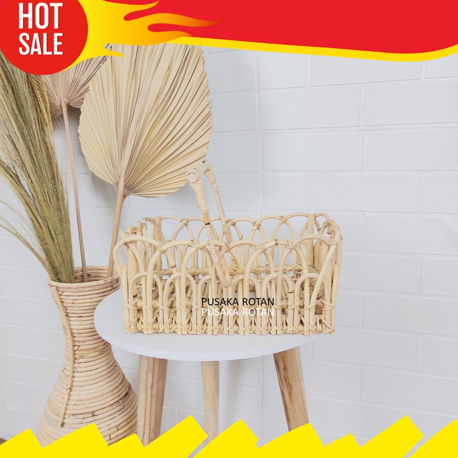 Keranjang Rotan Aesthetic - Keranjang Kado Souvenir Hantaran - Keranjang Properti Foto - Keranjang Roti