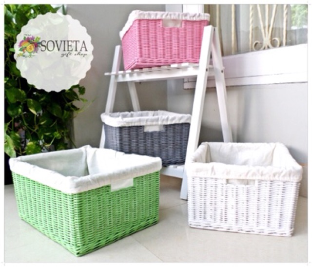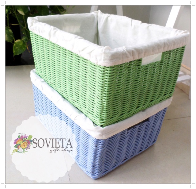 Keranjang Rotan Kotak Storage Penyimpanan Keranjang Box Rotan Warna Hijau Pastel