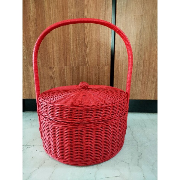 Keranjang Rotan Rantang Merah Blossom D34cm - Natural