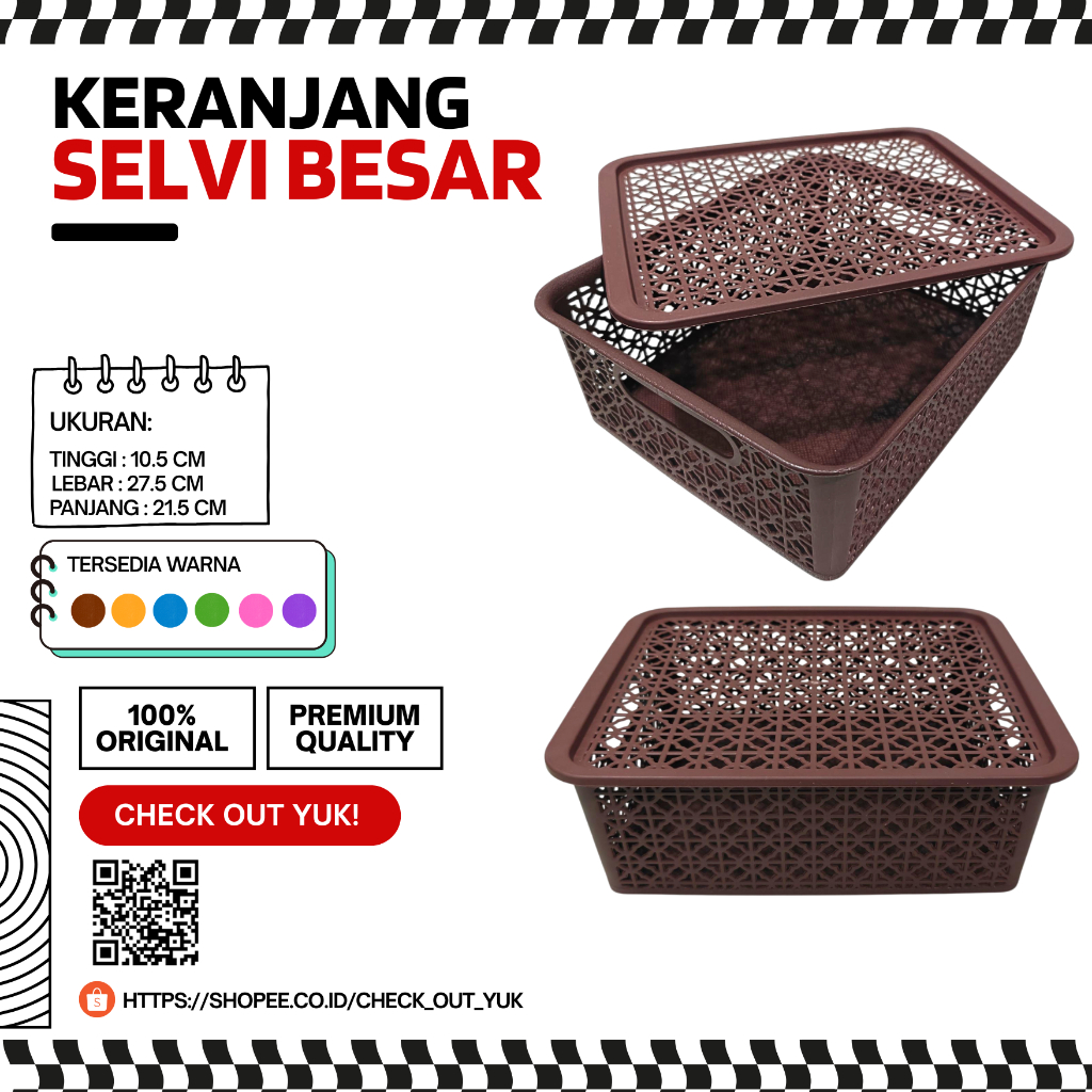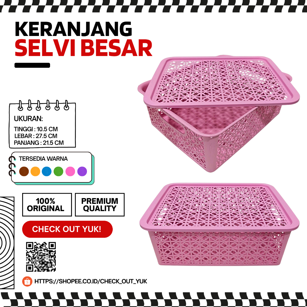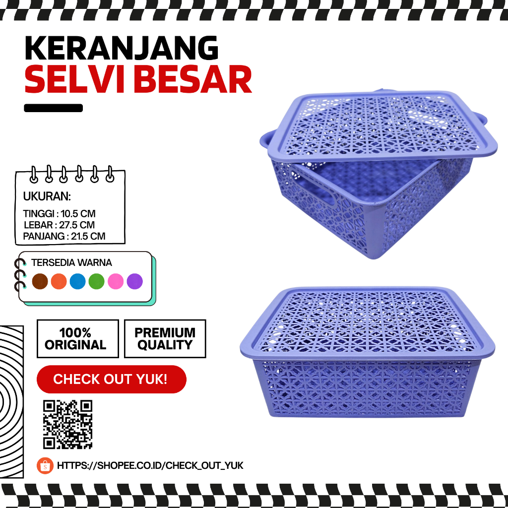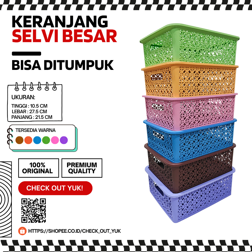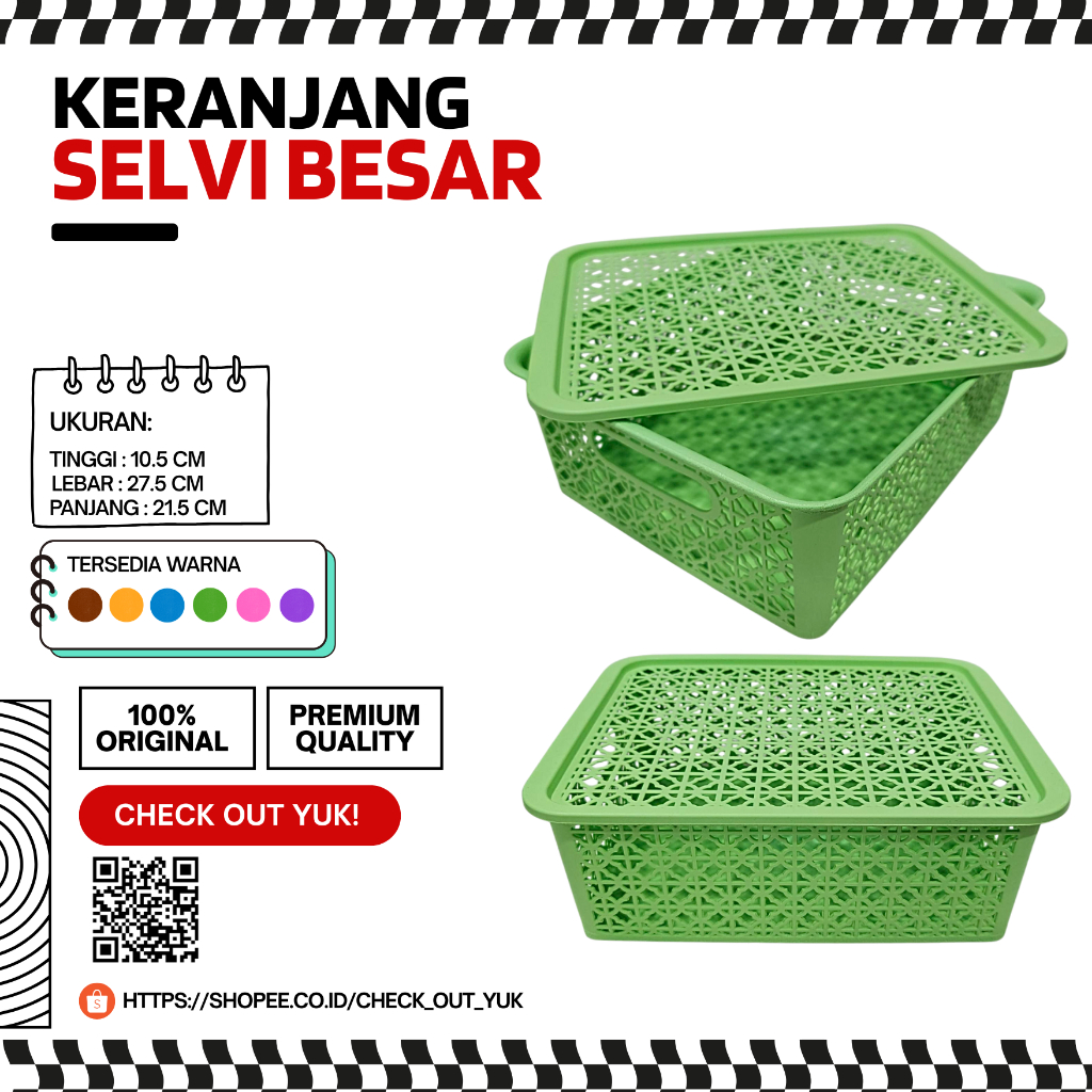 Keranjang Penyimpanan Storage Plastik Selvi Besar 27,5×21,5×10,5 cm – 6 Warna / Keranjang Parcel Storage Penyimpanan Plastik Serbaguna