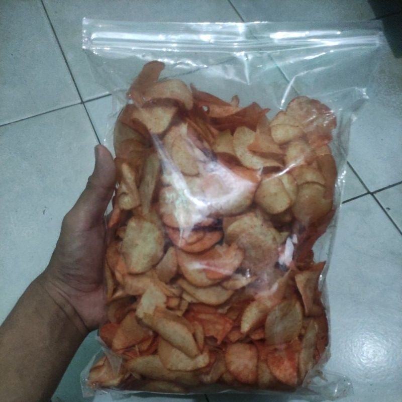 Keripik Singkong Balado Pedes Gurih±500gram / keripik jerit/ Kripik enak /