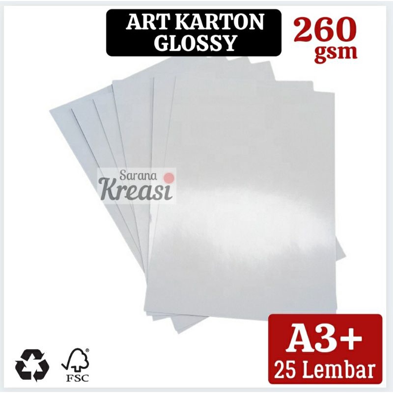 Kertas Art Karton Glossy 260g A3+ (isi 25 Lembar) Art paper Kilap