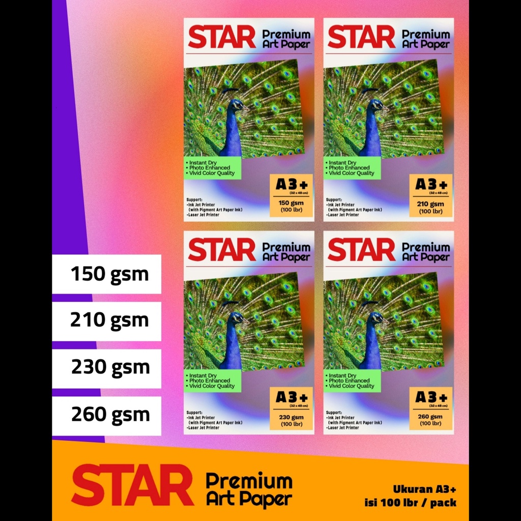 Kertas Art Paper STAR A3+ (A3 Plus) isi 100 lembar 150/210/230/260 gsm
