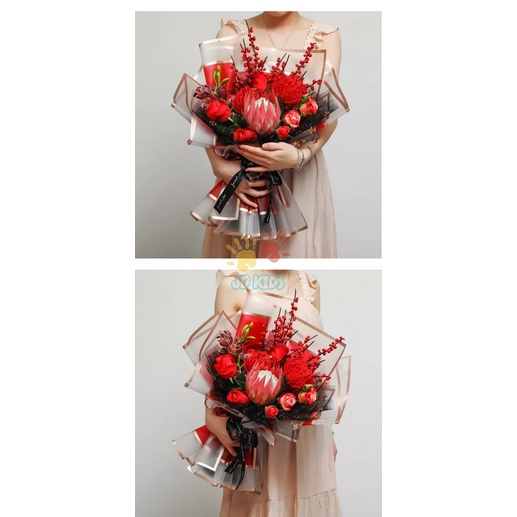 Kertas Buket Bunga Double Lis Emas / Gold Frame Flower Bouquet Wrapping