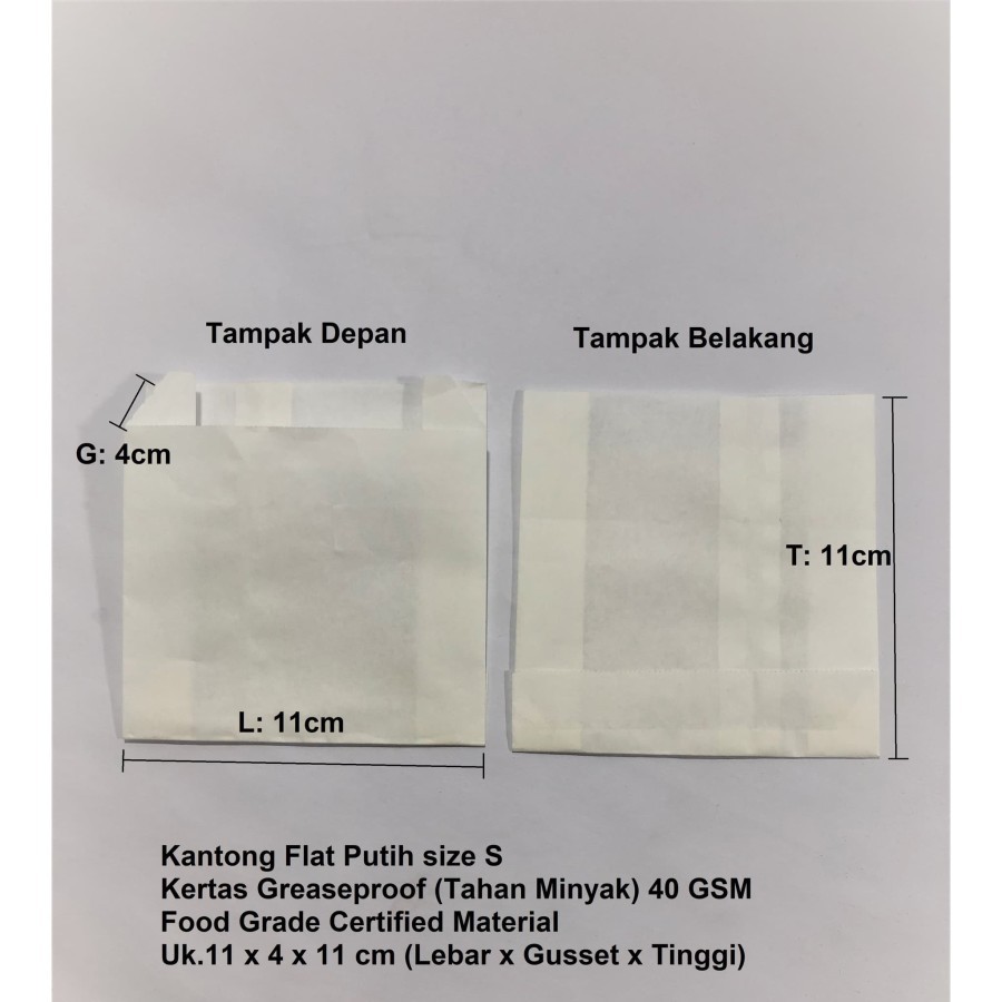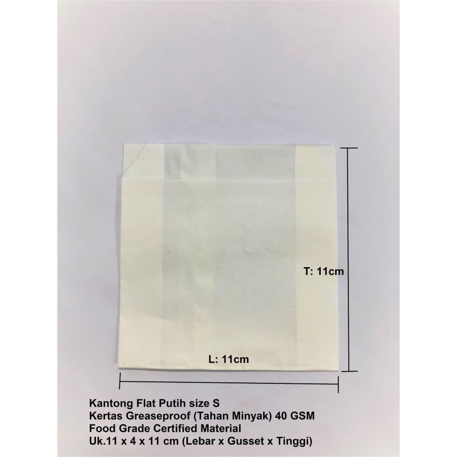 Kertas Bungkus Roti / Makanan / Kantong Flat Kantong Kertas Putih 11x4x11 Anti Minyak Greaseproof