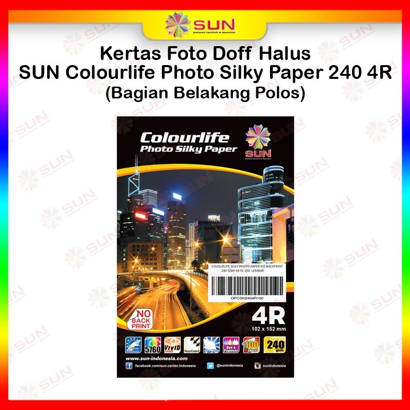 Kertas Foto 3R/4R/5R Silky Doff - SUN Colourlife Silky Photo Paper 4R/5R ( Support epson/canon/hp/brother ori/dye/pigment/art paper ink - 664, 003, 673, 790, 810, BT5000, GT51 52, dll)