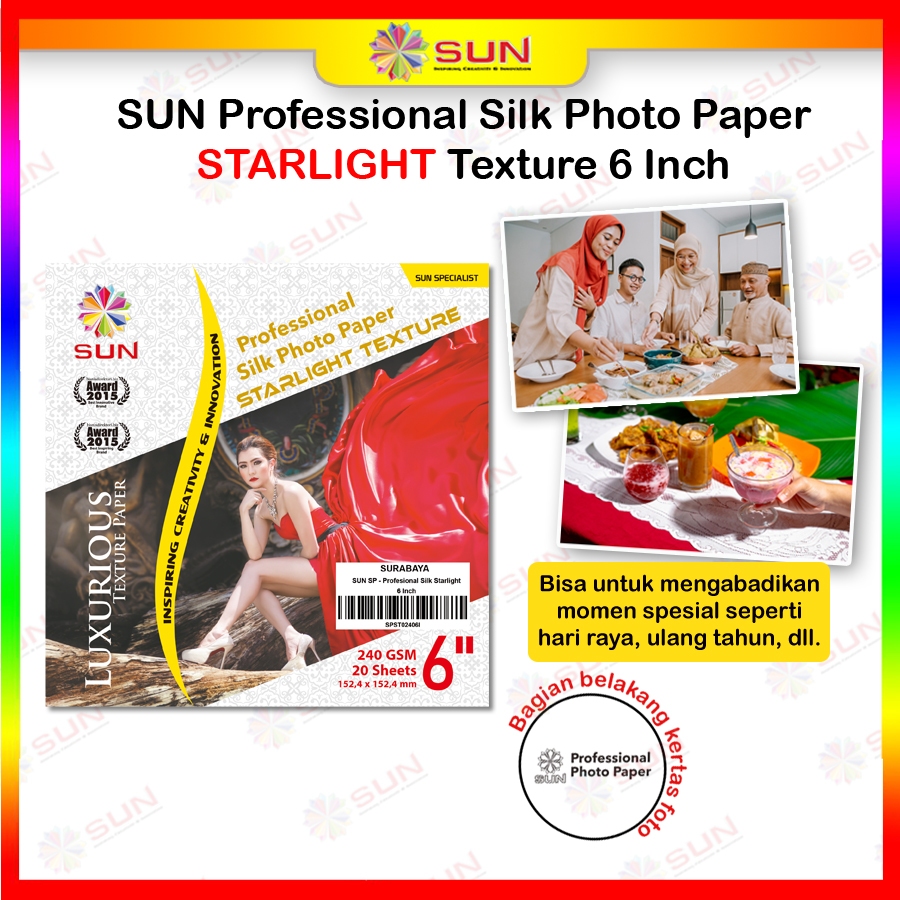 Kertas Foto Doff Silky 3R A6 4R Texture Kulit Jeruk - SUN Professional Silk Photo Paper 265 3R 4R, A6 - Motif Glossy, Pearl, Satin, Canvas, Starlight ( Support epson/canon/hp/brother ori/dye/pigment/art paper ink - 664, 003, 673, 790, dll)