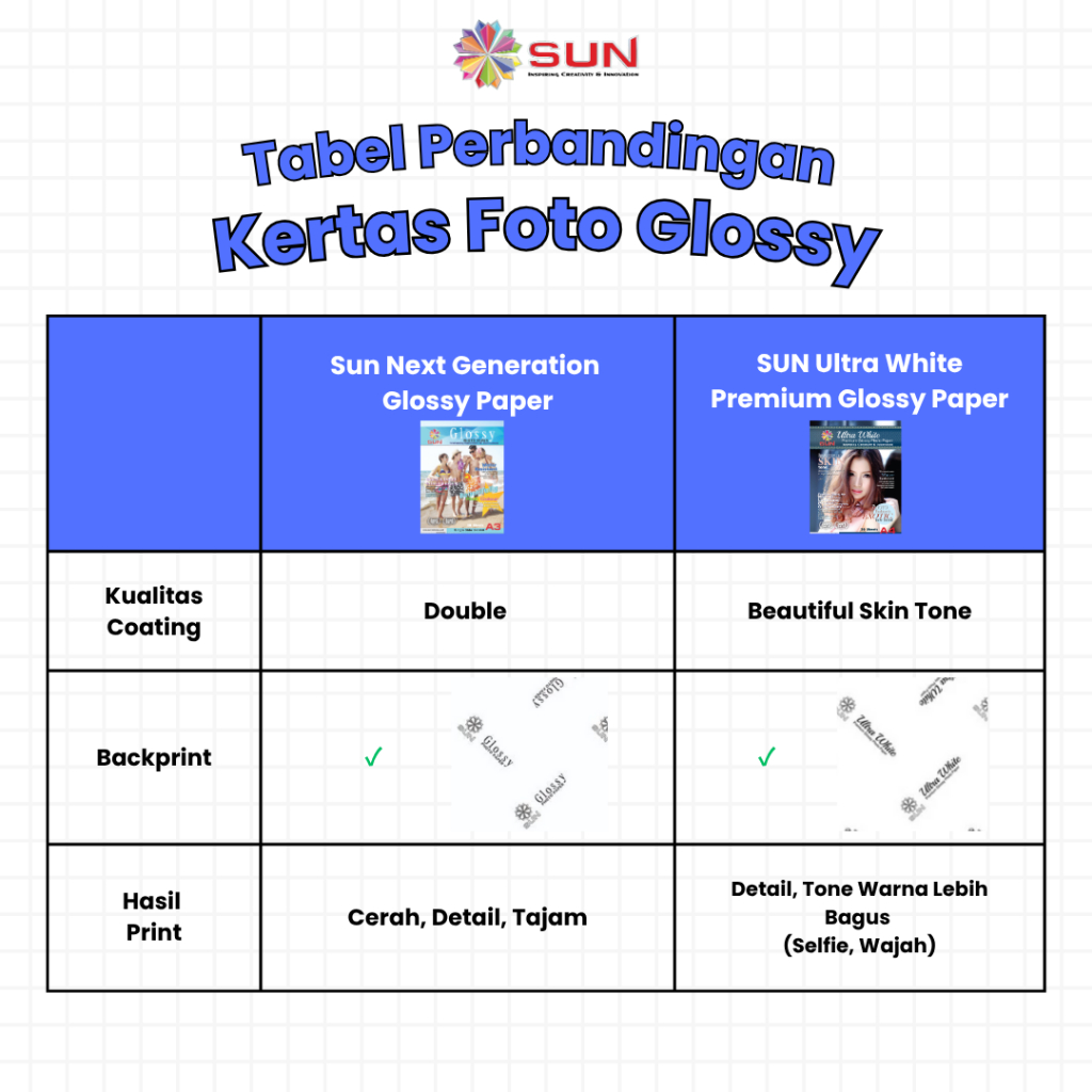 Kertas Foto Glossy A4 / A3 Premium 260, 240, 210, 185 gram - SUN NG Glossy Photo Paper Single Side Ketebalan 185, 210, 240, 260 gram Professional ( Support epson/canon/hp/brother ori (dye) - 664, 003, 673, 001 )