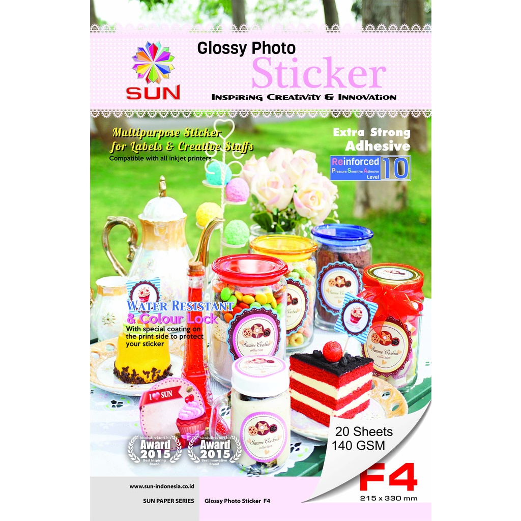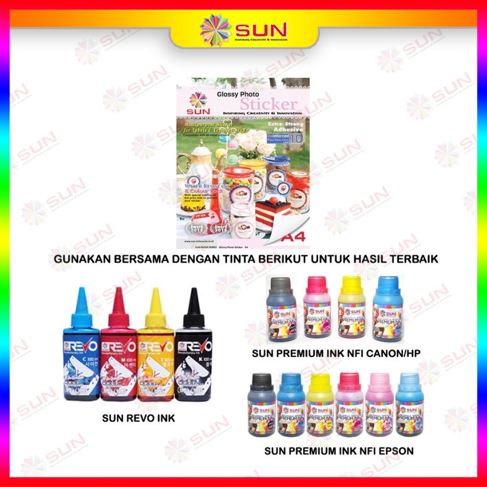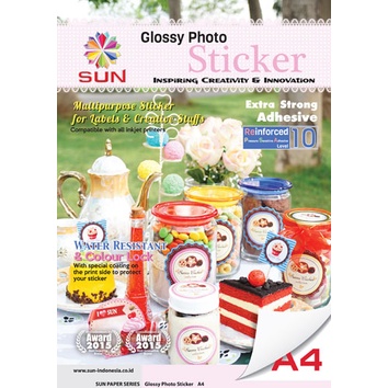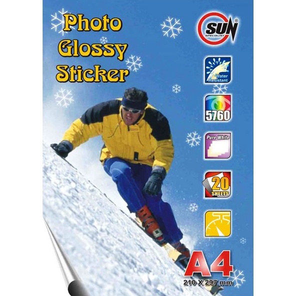 Kertas Foto Sticker A4/F4 - SUN NG Glossy Photo Sticker Ultra Thin, 140 Gram, HVS sticker, Foto Glossy Sticker ( Support printer epson/canon/hp/brother ori (dye ) - 664, 003, 673, 001 )