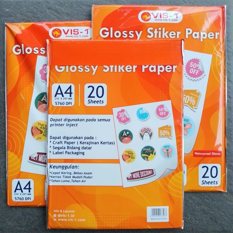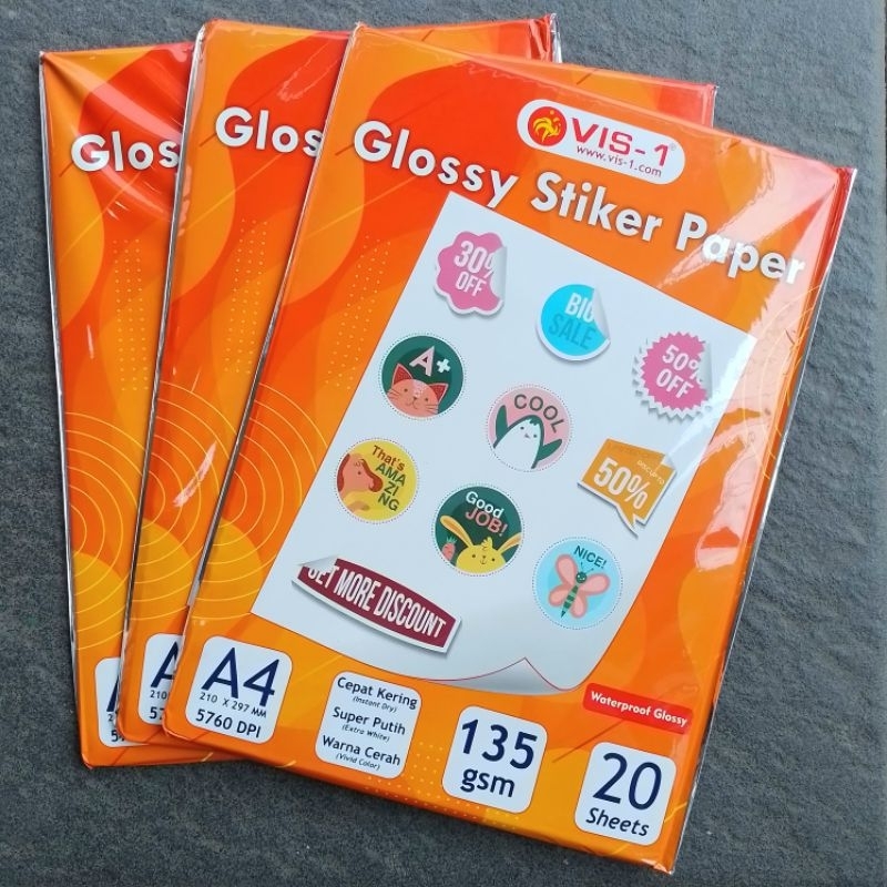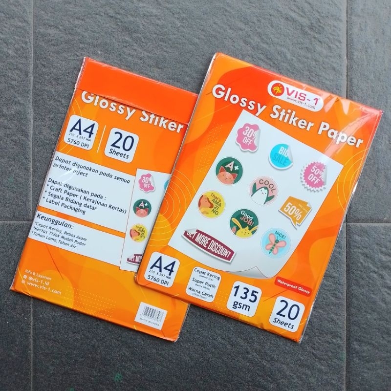 Kertas Foto Sticker Glossy Sticker Paper VIS-1 A4 135 gsm ( Pak ) [ Original ]