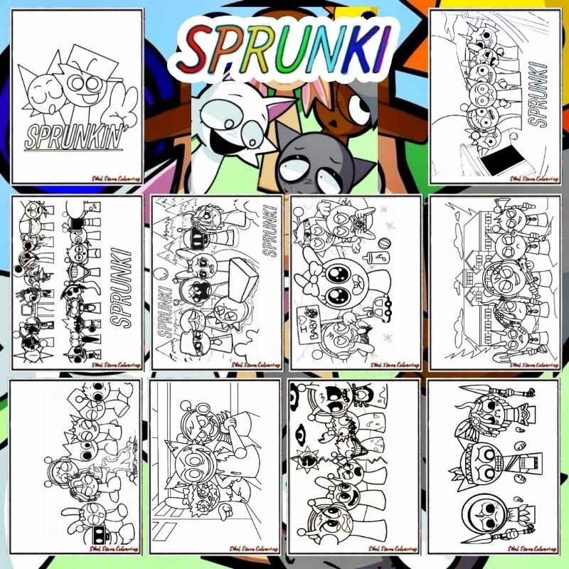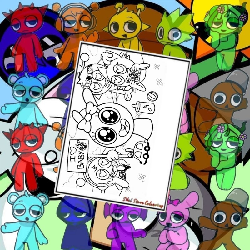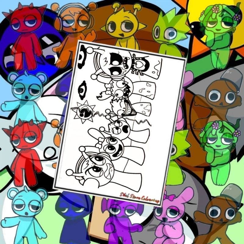 Kertas Gambar Mewarnai Sprunki V4 / isi 10 Lembar Kertas Tebal 160gsm / PAUD / TK / SD