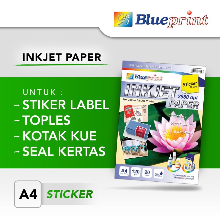 Kertas Inkjet Stiker / Sticker Inkjet Paper BLUEPRINT A4 70 gsm