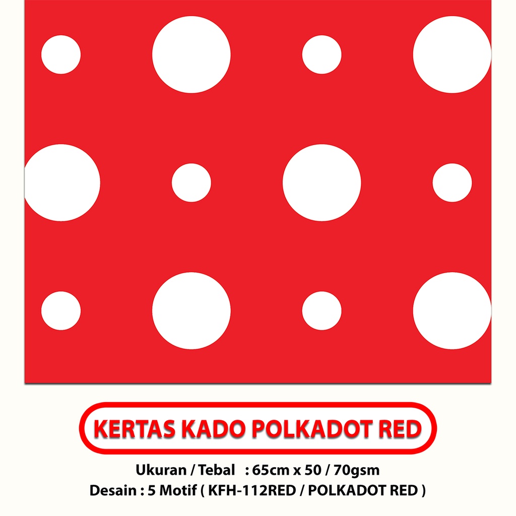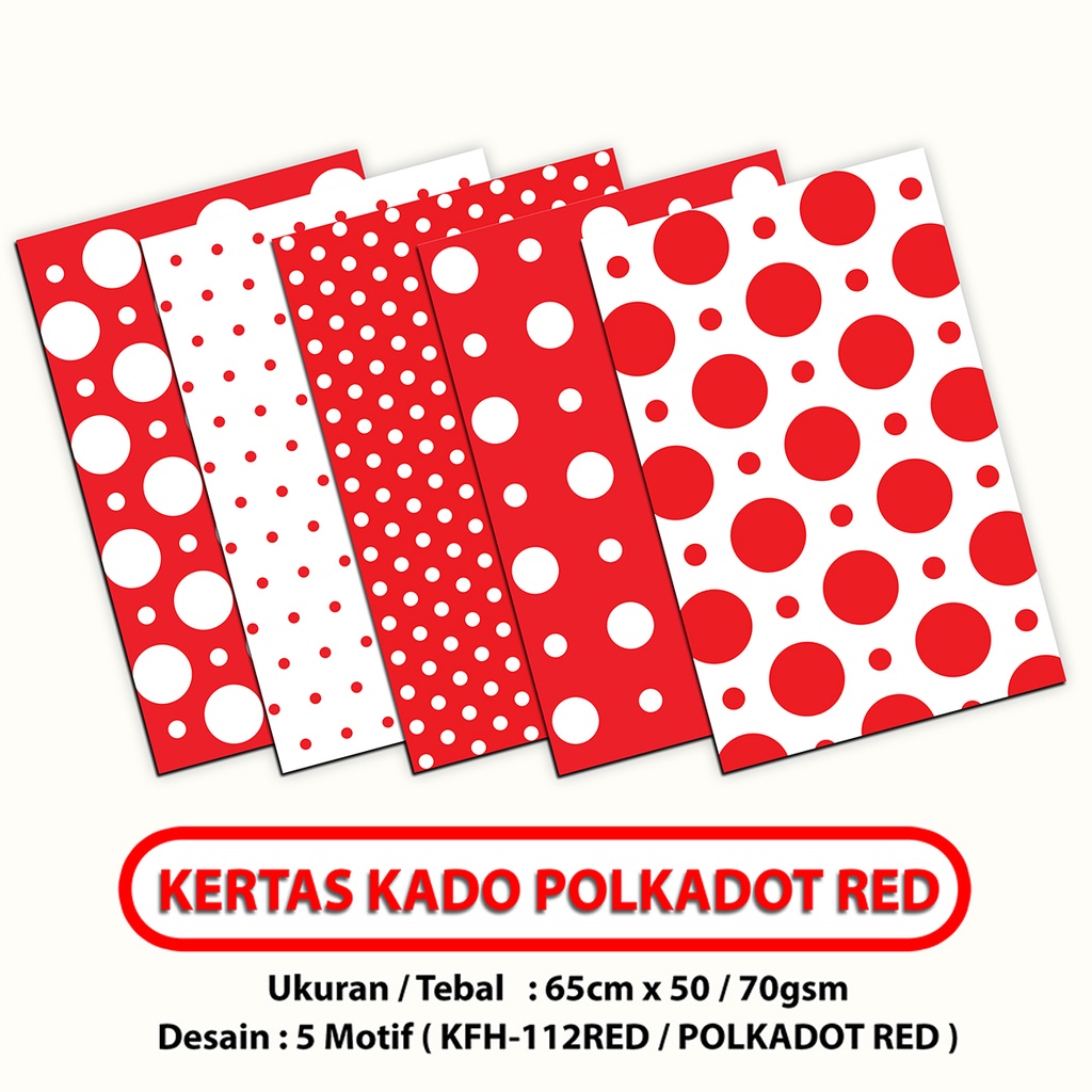 Kertas Kado Polkadot Red Merah Putih Isi 50 / Bungkus Kado SQUEEZY KFH-112RED