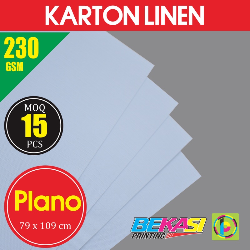 Kertas Karton Carton LINEN PUTIH 230 GSM Ukuran Plano 79x109 cm isi 15 Lbr