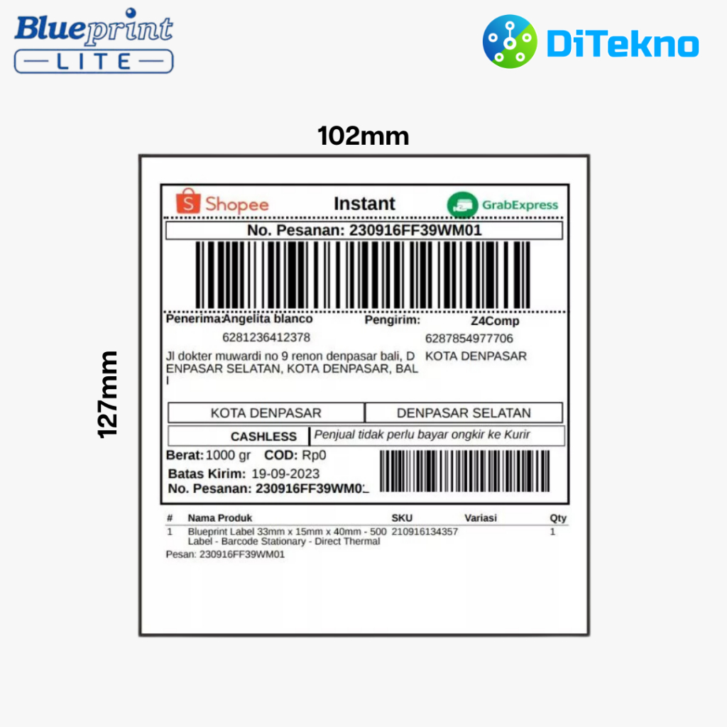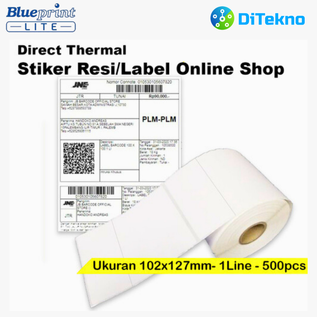 Blueprint Lite Barcode Direct Thermal 102x127 500 PCS Kertas Label Stiker Resi Online