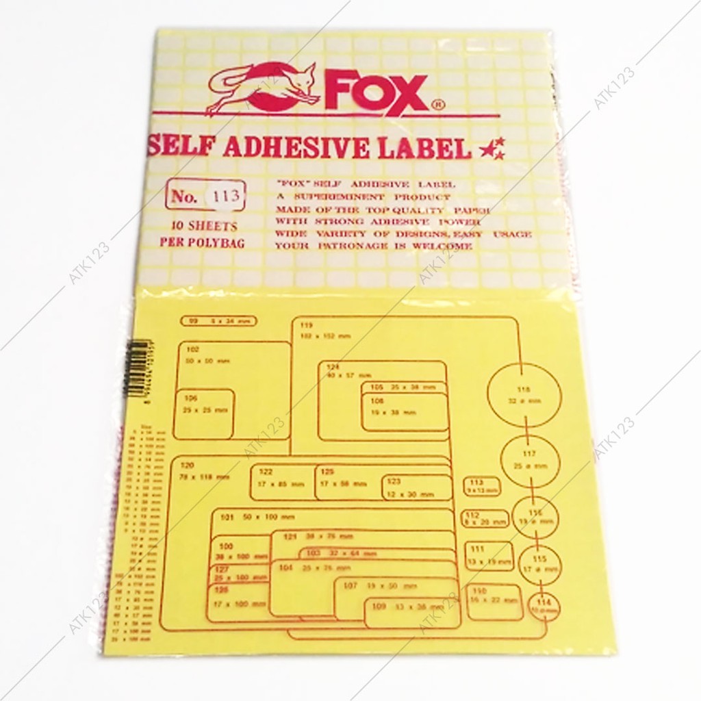 Kertas / Label Stiker Fox No. 113 uk. 9 x 13 mm (Persegi Panjang)