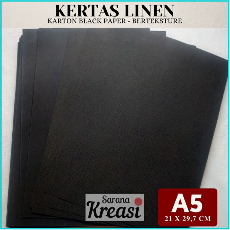 Kertas Linen Hitam Karton 220gr A5 (50 Lembar) | Kertas Karton Linen Hitam | Linen Black Paper