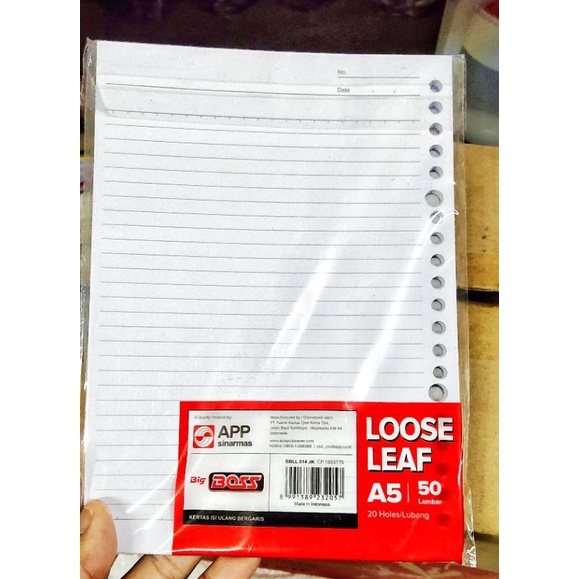Kertas Loose Leaf / kertas binder A5 50 lembar (1 pack)