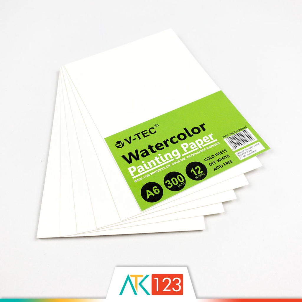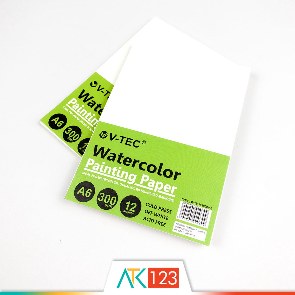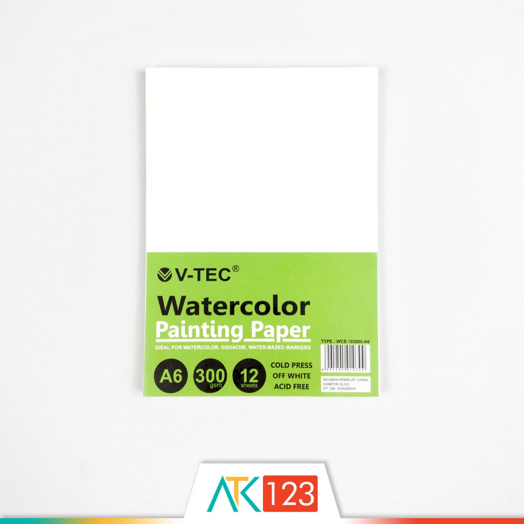 Kertas Lukis Cat Air / Watercolour / Watercolor Painting Paper / Pad A6 300 gsm 12 Sheets Cold Press V-Tec WCB 103000