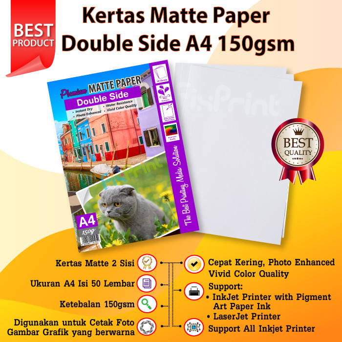 Kertas Matte Paper Double Side A4 150gsm - Kertas Matte A4 50 Lembar FSB460