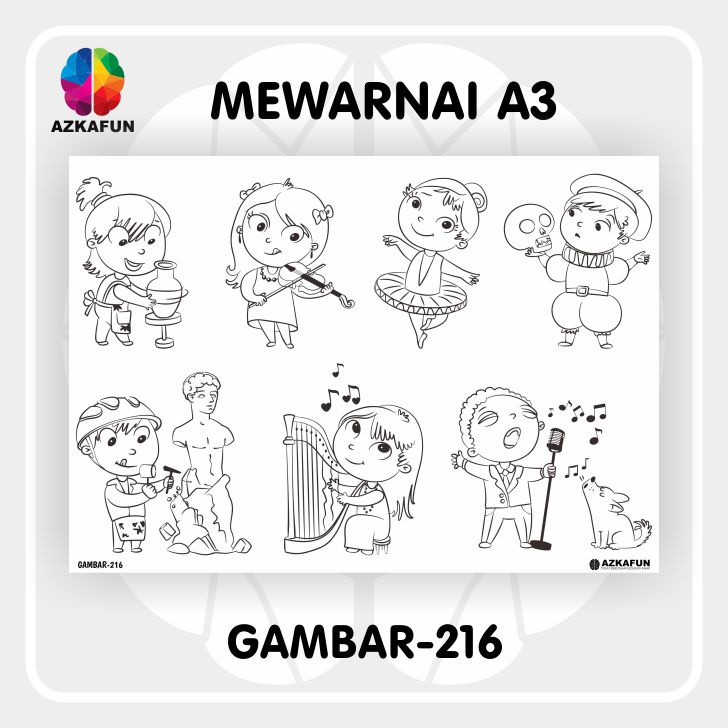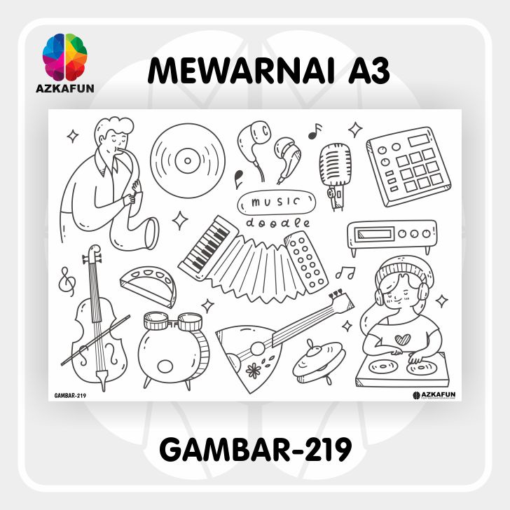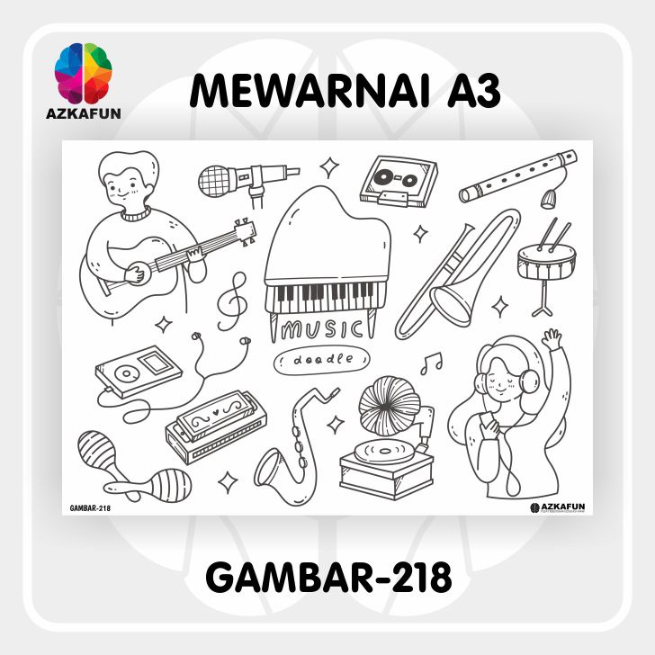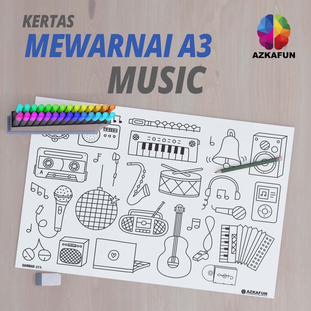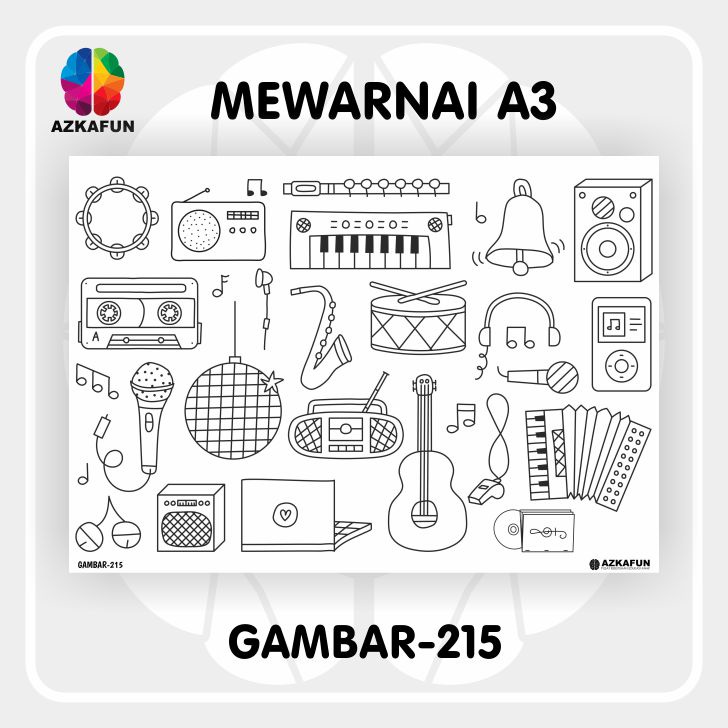 Kertas Mewarnai A3 MUSIC - Mewarnai tema alat musik