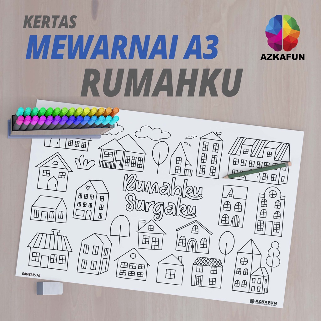 Kertas Mewarnai A3 RUMAHKU - Mewarnai rumah